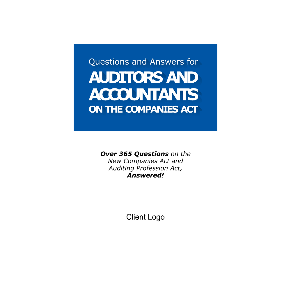 - Practical answers and explanations to a selection of over 365 questions around the new Companies Act and Amended Auditing Profession Act for Accountants and AuditorsIncludes the Auditing Profession Act, 2005 and amendments from the Auditing Profession Amendment Act, 2015 SOME SELECTED QUESTIONS FROM THE BOOK
