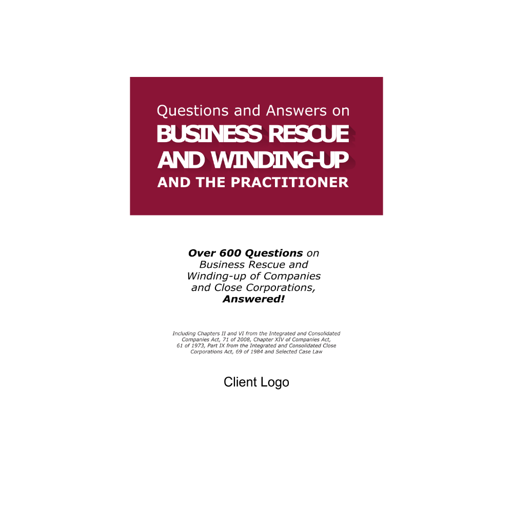 Practical answers and explanations to a selection of over 600 questions on Business Rescue and Winding-up of Companies, including questions and answers on the Business Rescue Plan, the Business Rescue Practitioner and the Liquidator including Selected Case Law!